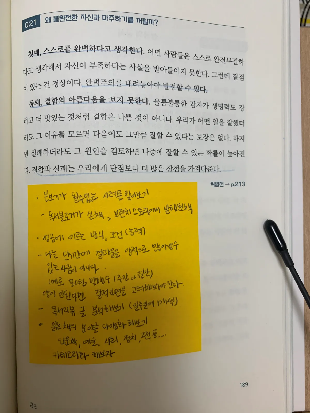 책의-한페이지-메모한-포스트잇이-붙어있다