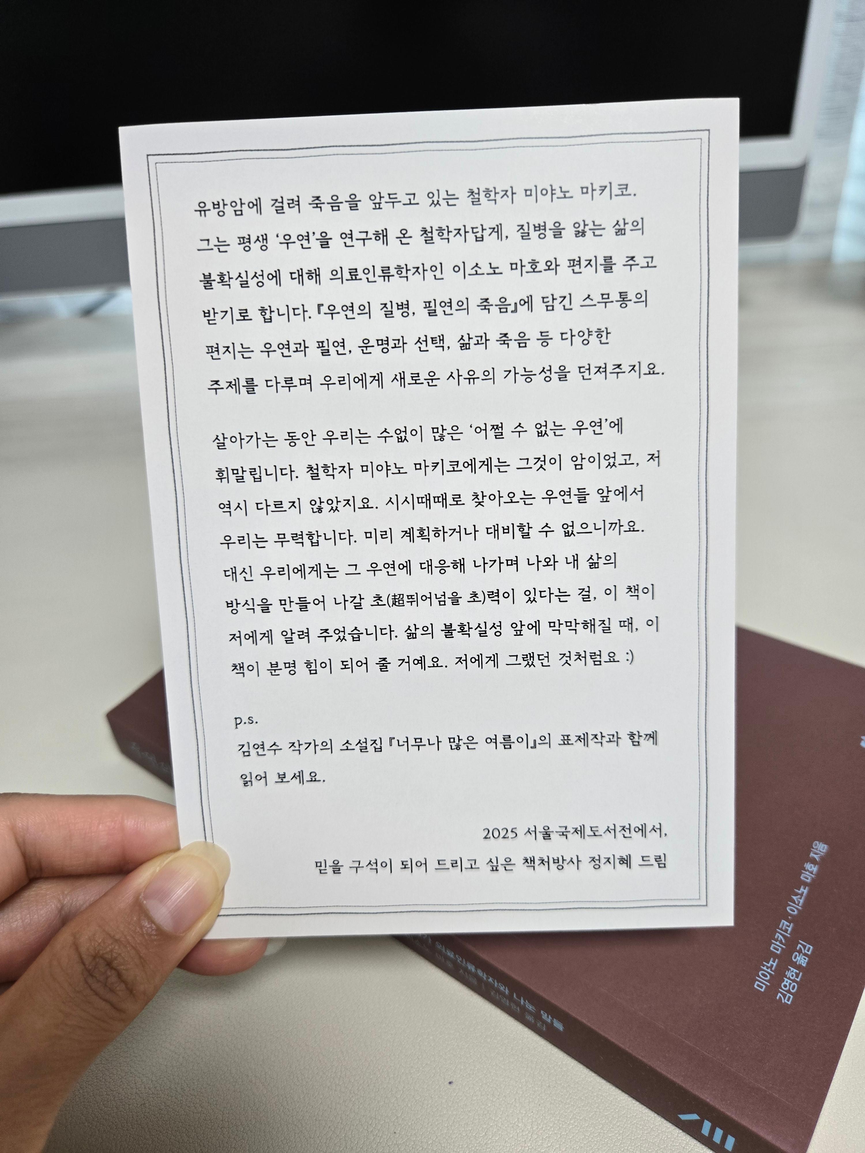 책의 내용이 내 취향이기도 했지만, 출판사 관계자 분이 책을 기깔나게 소개해주셔서 홀린 듯 사게 된 것 같다.