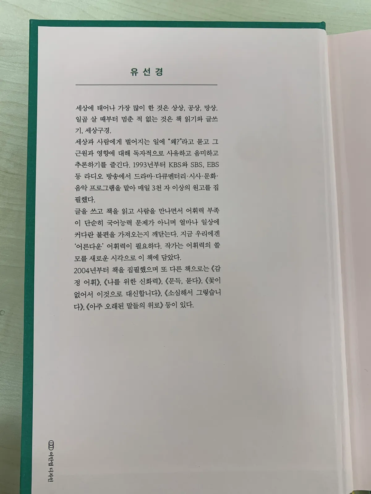 '어른의 어휘력'은 26년 동안 라디오 방송 작가로 일한 저자의 풍부한 어휘력이 담겨있는 책이다.