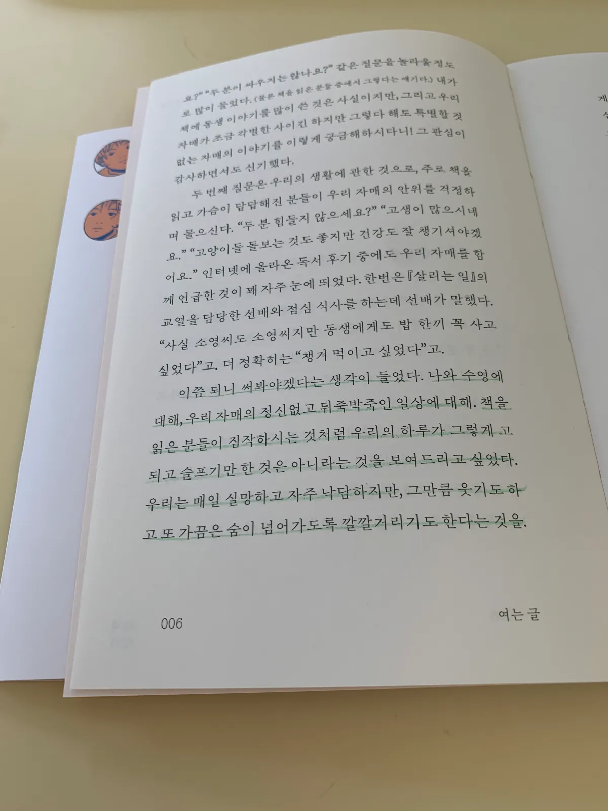 그래서 나처럼 '살리는 일'을 읽은 독자라면 두 자매에 대해 더 알고 싶고 궁금했을 거라는 생각이 든다.