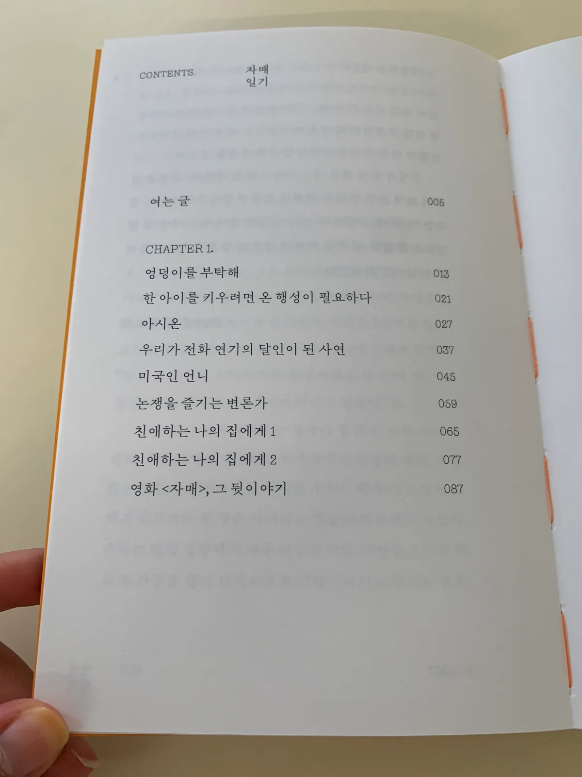 *다음은 내가 '자매 일기'에서 인상적으로 읽은 목차이다.